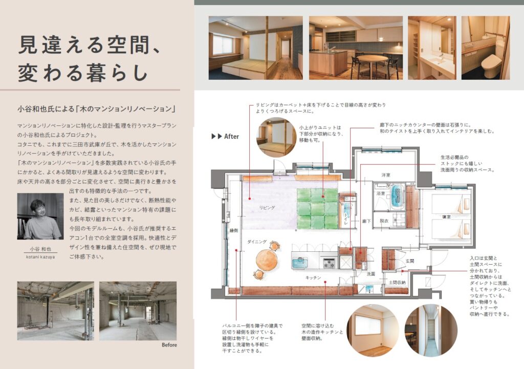 木のぬくもりを感じられるマンションリノベーション見学会のチラシが完成しました。